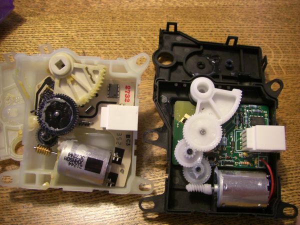 Old white actuator on left. New black actuator on right. Internals are different. More durable? I sure hope so. Time will tell.