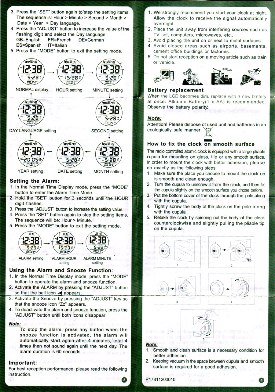 Ken-Tech or Sonnet Atomic Radio Controlled Bathroom Digital Alarm Clock T-4660 Instruction Manual
