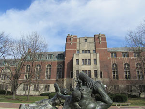 These images were shot at the University of Michigan, Ann Arbor, MI campus. You'll see Burton Tower, the Women' League, Hill Auditorium and other buildings around a beautiful fountain. If I shot a wide angle and a close up, they were taken from the same location to demonstrate the ability of the zoom lens.