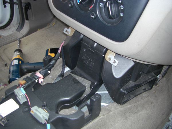 Here both side of the console are removed. You only need to remove the driver side panel. I hadn't figured everything out yet.