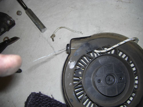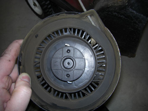 You're done, sorta. Now reverse these directions and put it back together. Before you close it up, be sure to cut the cable tie securing the reel and now let the cord draw in. Make sure everything is moving smoothly. Don't do what I did. I passed the pull-cord through the hole for the electric start switch. I didn't notice until I tried to screw everything back together. I had to take the handle off and rethread the pull-cord. If I had these instructions I may not have a made that mistake!