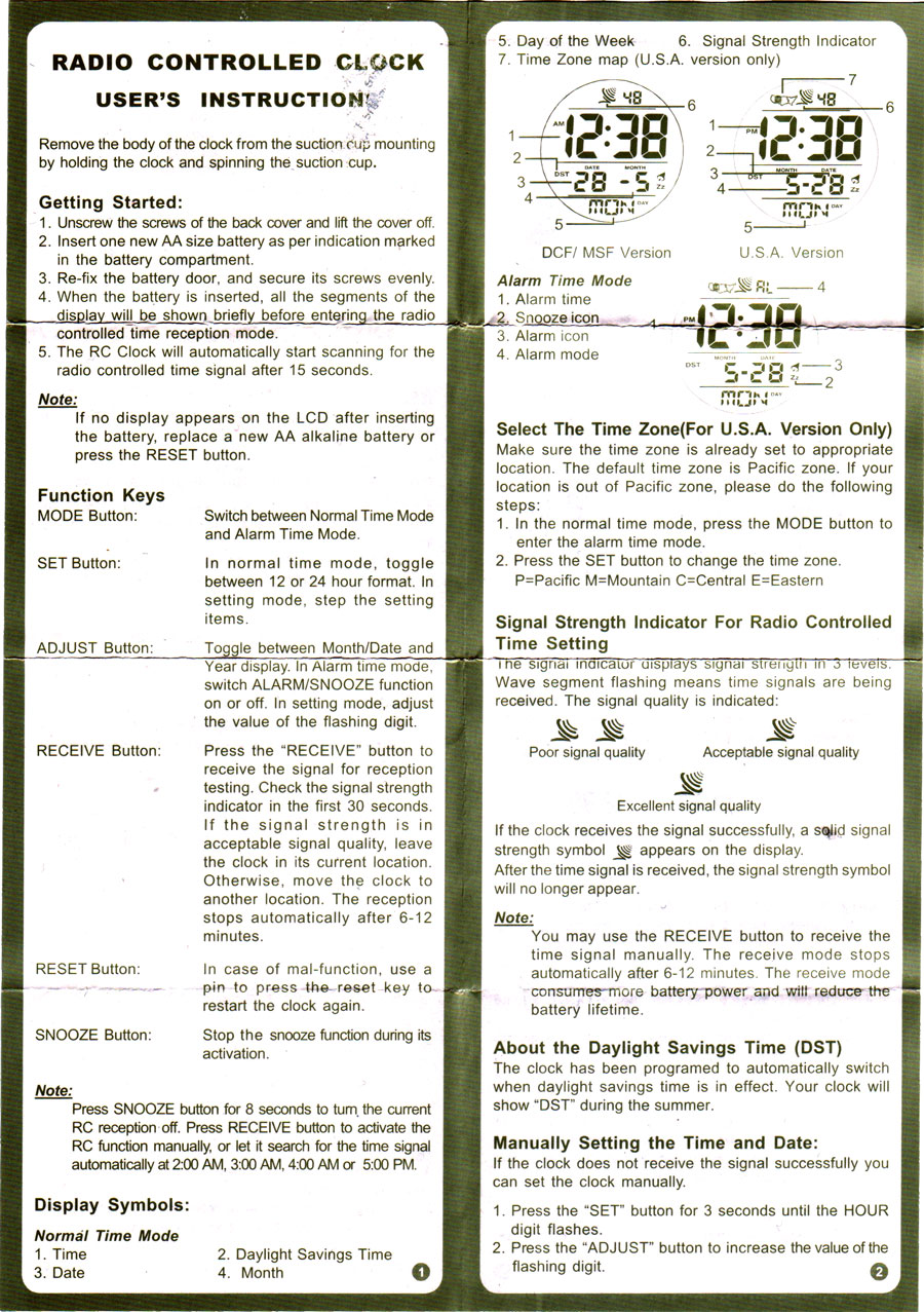 Ken-Tech or Sonnet Atomic Radio Controlled Bathroom Digital Alarm Clock T-4660 Instruction Manual