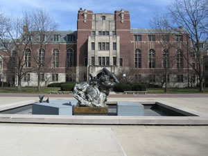 These images were shot at the University of Michigan, Ann Arbor, MI campus. You'll see Burton Tower, the Women' League, Hill Auditorium and other buildings around a beautiful fountain. If I shot a wide angle and a close up, they were taken from the same location to demonstrate the ability of the zoom lens.